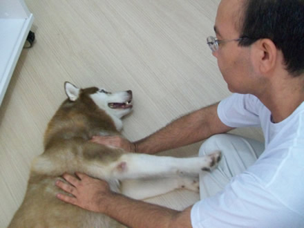 Coloque as mãos no animalzinho de forma que ele fique confortável. Geralmente não precisa ficar mudando de posição como é feito em pessoas, você pode permanecer num lugar só. O tempo de aplicação depende da vontade dele, assim que não precisar mais, ele mesmo se agita e sai do alcance das mãos.